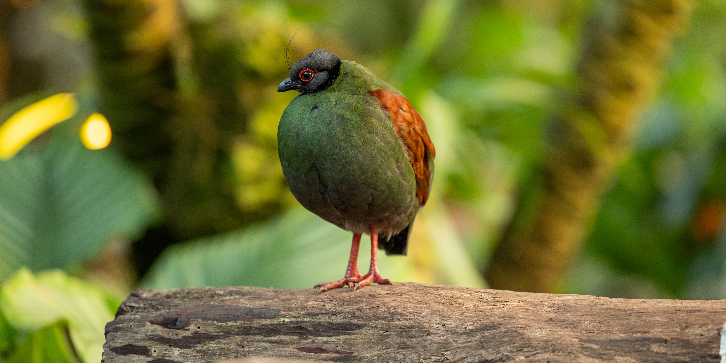 Die Straußwachtel stammt ursprünglich aus Borneo, Sumatra, Thailand und Malakka. Die tagaktiven Straußwachteln leben in kleinen Gruppen am Waldboden. Um sich im Dickicht nicht aus den Augen zu verlieren, verständigen sie sich mit unauffälligen Lauten. Das Männchen (der Hahn) ist an seinem wunderschönen, rotbraunen Schopf zu erkennen und ein richtiger Gentleman. Wenn er genügend Futter zusammengesucht hat, lässt er sein Weibchen immer zuerst fressen. Ist das nicht nett?
